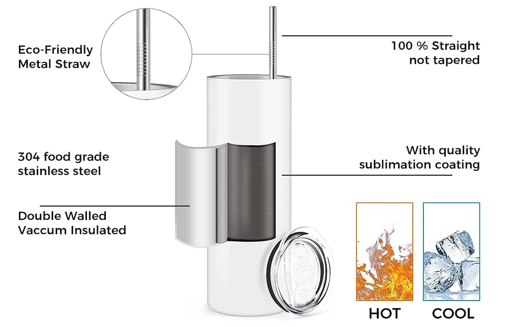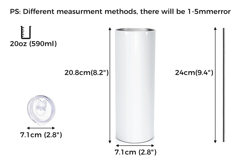 Unlike tapered alternatives, our tumbler features a 100% straight, uniform design that ensures full-wrap sublimation coverage effortlessly. No tricky alignment adjustments needed — just secure your transfer, press, and enjoy flawless, edge-to-edge results every time. Specifications: